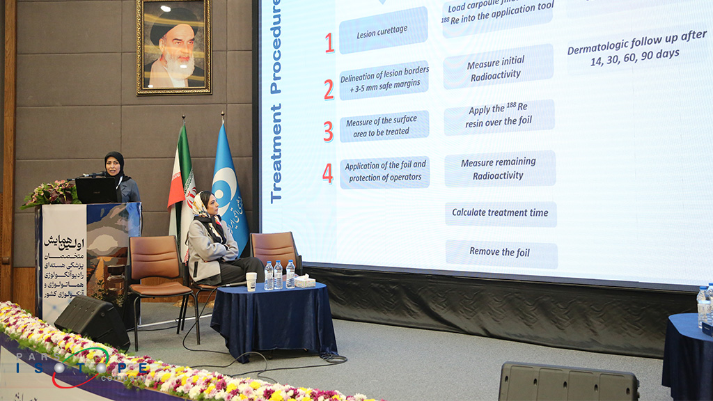 أما الجلسة الأخيرة والتي خُصصت لعلاجات حديثة لسرطان الجلد غير الملانوما، فانعقدت بمحاضرتين. في البداية قدمت الدكتورة نسرين رئیسی، أخصائية الطب النووي، الكريمة الجلدية رينيوم-۱۸۸، مع عرض الحالات المعالجة بها، ووصفتها بأنها من الطرق الحديثة في العالم ، مشيرة إلى أن شركة بارس إيزوتوب، التي تُعد ثاني شركة منتجة في العالم، توفر حالیا هذه الكريمة للمراكز الطبية النووية لعلاج سرطان الجلد غير الملانوما. كما استعرضت الدكتورة بيتا فام، باحثة في مركز أبحاث الجلد بجامعة الشهيد بهشتي، طرقًا أخرى حديثة لعلاج سرطان الجلد غير الملانوما.